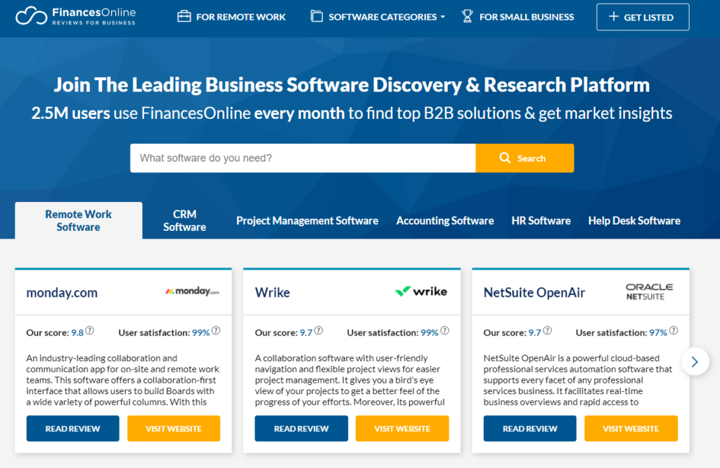 Kao online dobavljač, Capterra povezuje kupce s dobavljačima tehnologije u softverskoj industriji. Kompanija pomaže milijunima korisnika da nađu najbolja softverska rješenja. U ovom primjeru možete vidjeti da pruža hrpu korisnih detalja, kao i recenzija korisnika.