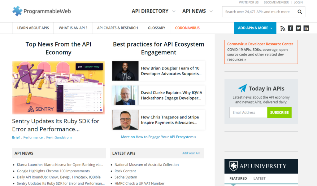Vodeći izvor API vijesti i informacija koji prati razvoj ovog polja diljem svijeta i pruža API Directory za internet.