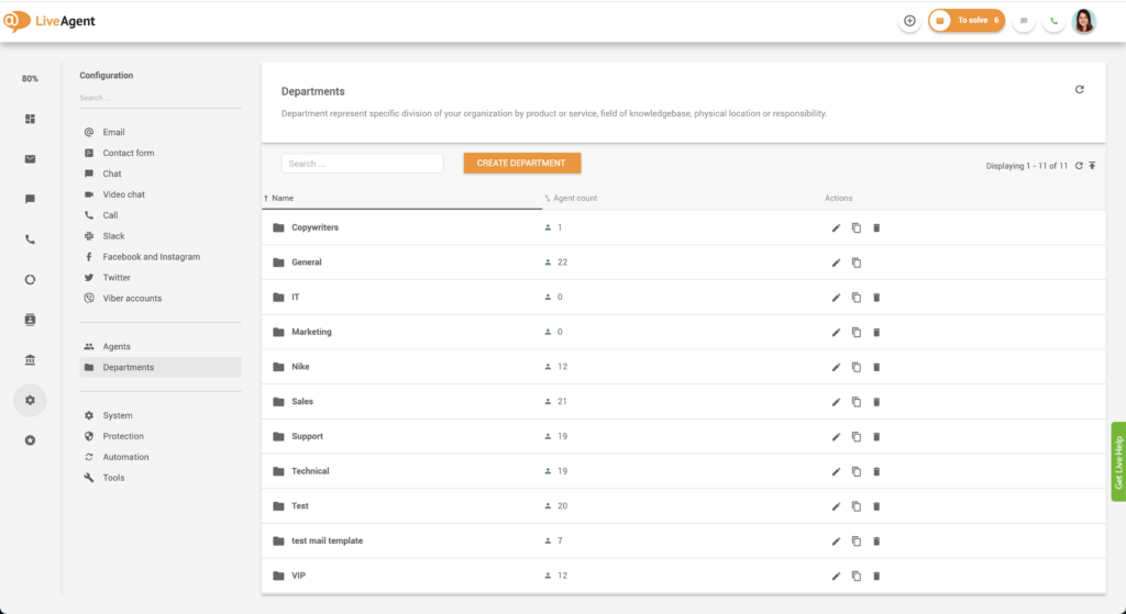 Kako kreirati odjele u LiveAgent-u