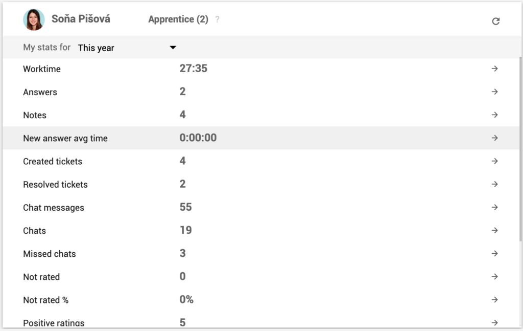 Imajte na umu kako svi agenti mogu vidjeti svoje osobne statistike/izvještaje o performansama nakon prijave na LiveAgent.
