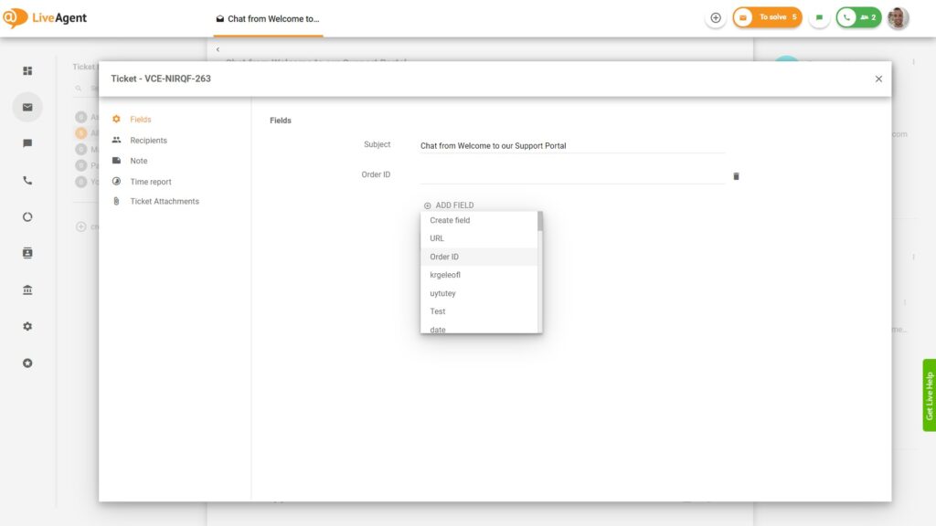 Ticket polja su prilagođena polja koja se obično koriste za prikupljanje više informacija o vašim ticketima. LiveAgent vam omogućuje stvaranje neograničenih prilagođenih polja za tickete.