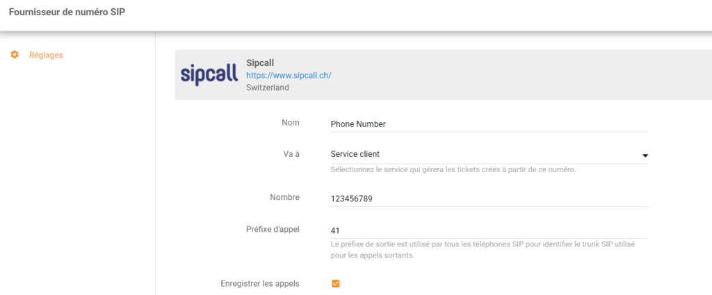 Telefonski je broj u LiveAgent-u i spreman za upotrebu. Ako želite, možete dodati više Sipcall telefonskih brojeva ili brojeve drugih VoIP davatelja usluga.