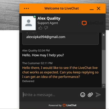 Općenito, izvedba LiveChat widgeta za live chat je odlična i nemam apsolutno nikakvih prigovora u bilo kojem smislu. Nisam imao problema s brzinom, a nisu bili prisutni ni bugovi ni problemi. LiveChat-ov widget je snažan konkurent kada je riječ o izvedbi.