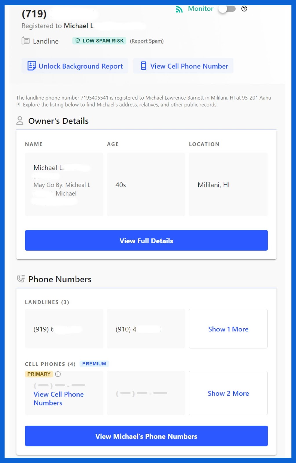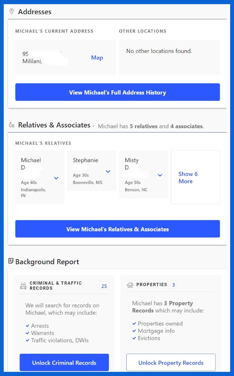 U nekim slučajevima, web stranica ili aplikacija može generirati detaljnije rezultate. U tom slučaju, možete vidjeti ime povezano s brojem i detalje kao što je adresa, starost osobe, drugi telefonski brojevi koji mogu biti povezani s istom osobom, rodbina i više. Međutim, ako trebate više informacija o njihovim kaznenim ili pozadinskim izvještajima, one su dostupne nakon plaćanja dodatne naknade.