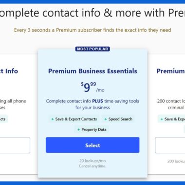 Treći plan pretplate košta $29.99 mjesečno i uključuje do 200 pretraživanja mjesečno, 20 izvještaja s kaznenim i javnim podacima i sve ostale značajke uključene u Premium Business Essentials. Kao i za ostale pakete, možete plaćati mjesečno ili godišnje, što će vas izaći $179.88 i jednako je $14.99 mjesečno.