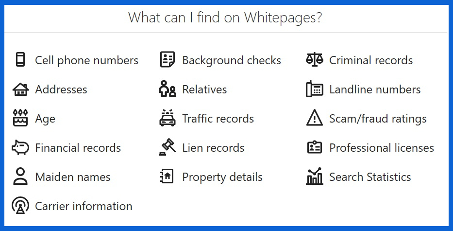 Whitepages je kompanija u privatnom vlasništvu, tako da podatke dobiva iz javnih izvora podataka i dobavljača treće strane. To može utjecati na pouzdanost pruženih informacija. Oni podsjećaju svoje korisnike da to imaju na umu i da potvrde sve informacije.