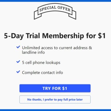 Whitepages također nudi petodnevno probno članstvo za $1, što vam daje neograničen pristup informacijama kao što su trenutna adresa i informacije o fiksnoj liniji. Probno članstvo ne uključuju dodatne značajke. Uključuje samo pet povratnih pretraga mobilnih brojeva, što vam ne daje previše prostora za testiranje ove usluge.