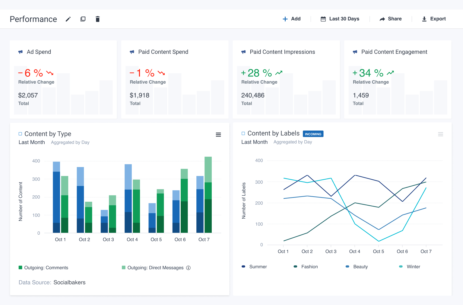 Socialbakers je platforma za društvene medije koja pomaže poduzećima svih veličina u angažmanu sa svojim klijentima. Kombinira društveno osluškivanje, analizu sadržaja i AI mapiranje osoba s analizom i mjerilima kako bi kreirali najbolji mogući ishod za vaše marketinške strategije za društvene medije.