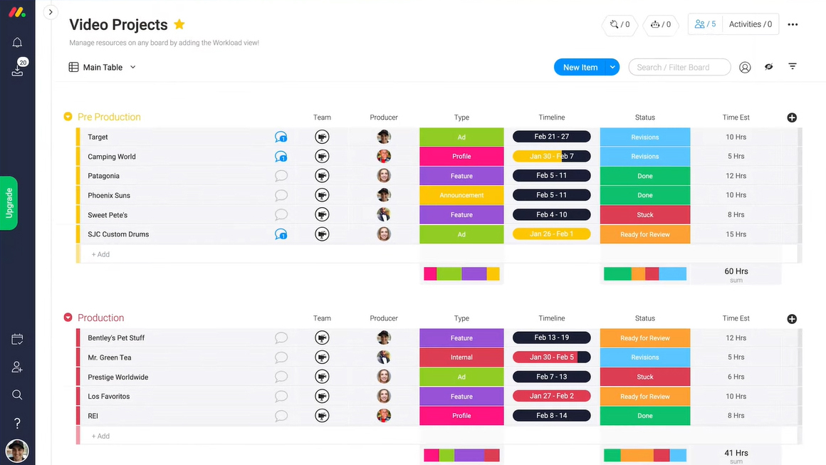 Kako bi eliminirali ljudski faktor i ponavljajuće zadatke, Monday.com korisnici mogu iskoristiti robusne mogućnosti automatizacije koje platforma nudi i pregledati tijekove rada u pločama u stilu mape, kalendara, vremenske crte ili Kanban stilu.