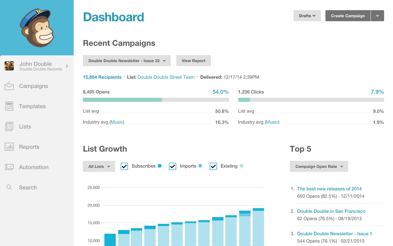 MailChimp je kompaktna marketinška platforma za mala poduzeća koja se može koristiti za kreiranje email novosti i praćanje njihove izvedbe. Dodatno, MailChimp korisnici mogu segmentirati svoje klijente u različite grupe, što slanje personaliziranih marketinških poruka čini još lakšim.