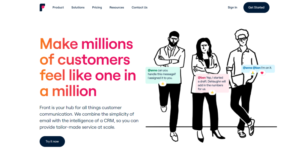 Front nudi sučelje u helpdesk stilu koje je klijentima lako za korištenje, što ga izdvaja od drugih opcija. Front se preporučuje za upravljanje pritužbama u malim i srednjim poduzećima. Iako Front odlično radi s upravljanjem pritužbama za poduzeća svih veličina, za veće kompanije je njegovo korištenje kompliciranije.